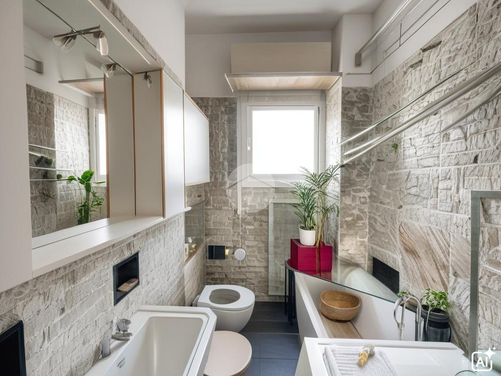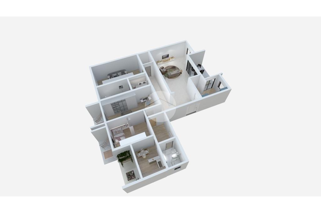 La soluzione è suddivisa in: ingresso con cucina abitabile con balcone e primo bagno finestrato con vasca, il disimpegno con ripostiglio in quota porta nell'ampia zona giorno composta da un doppio soggiorno con studio e doppio accesso al terrazzino con vista 3 Torri.