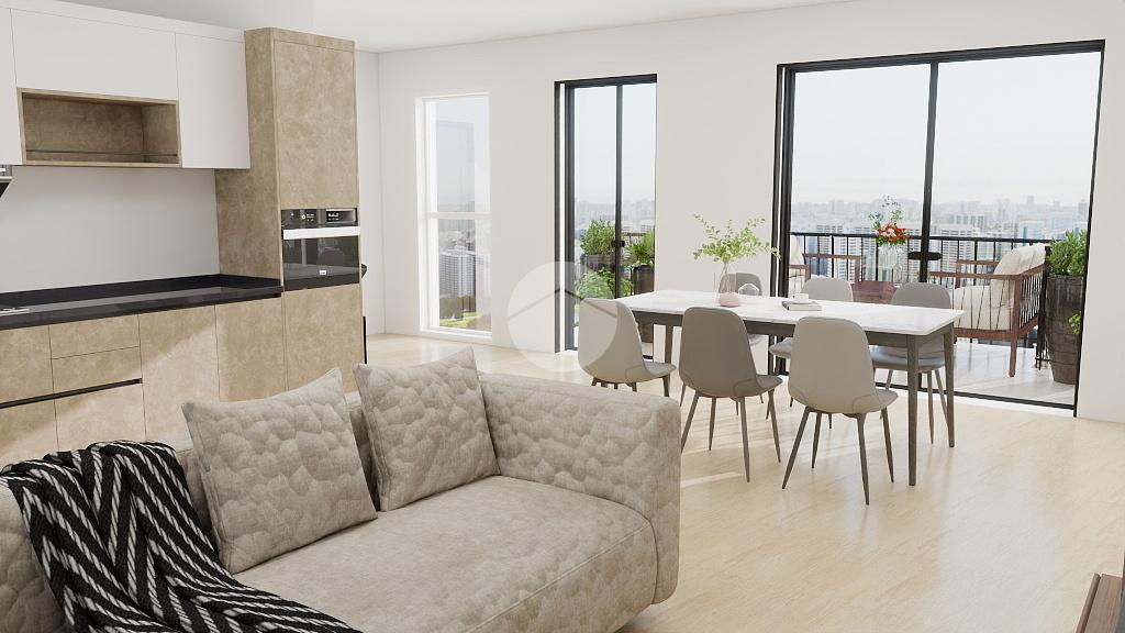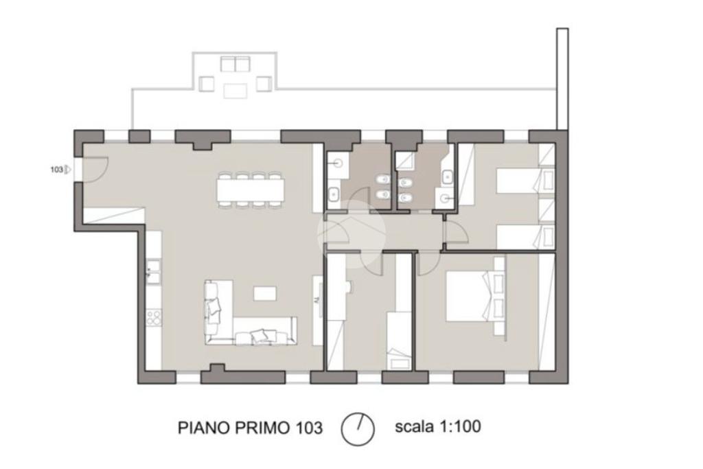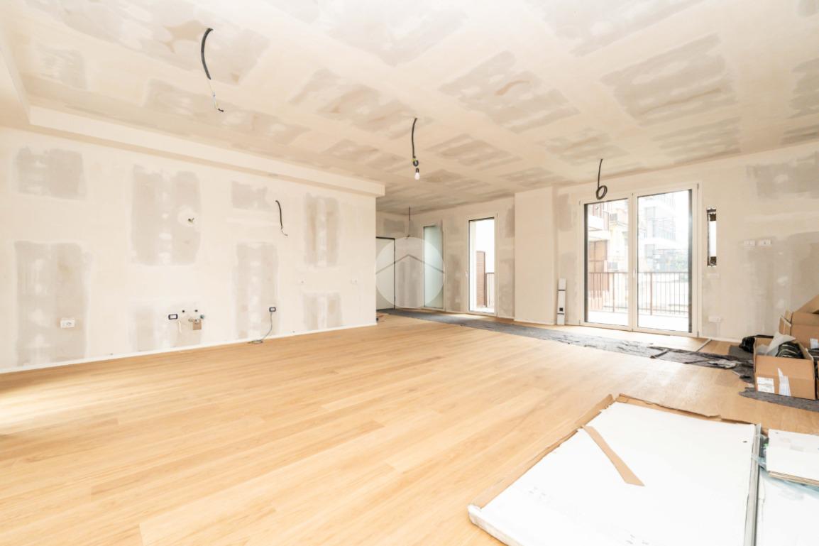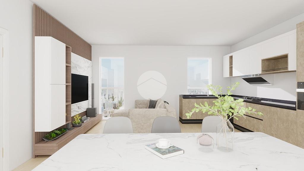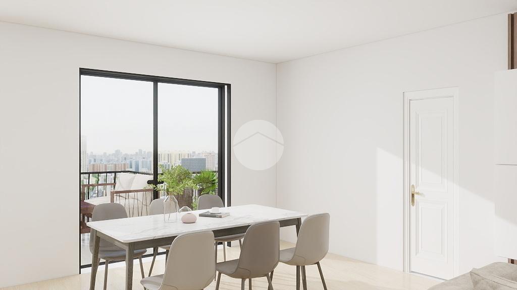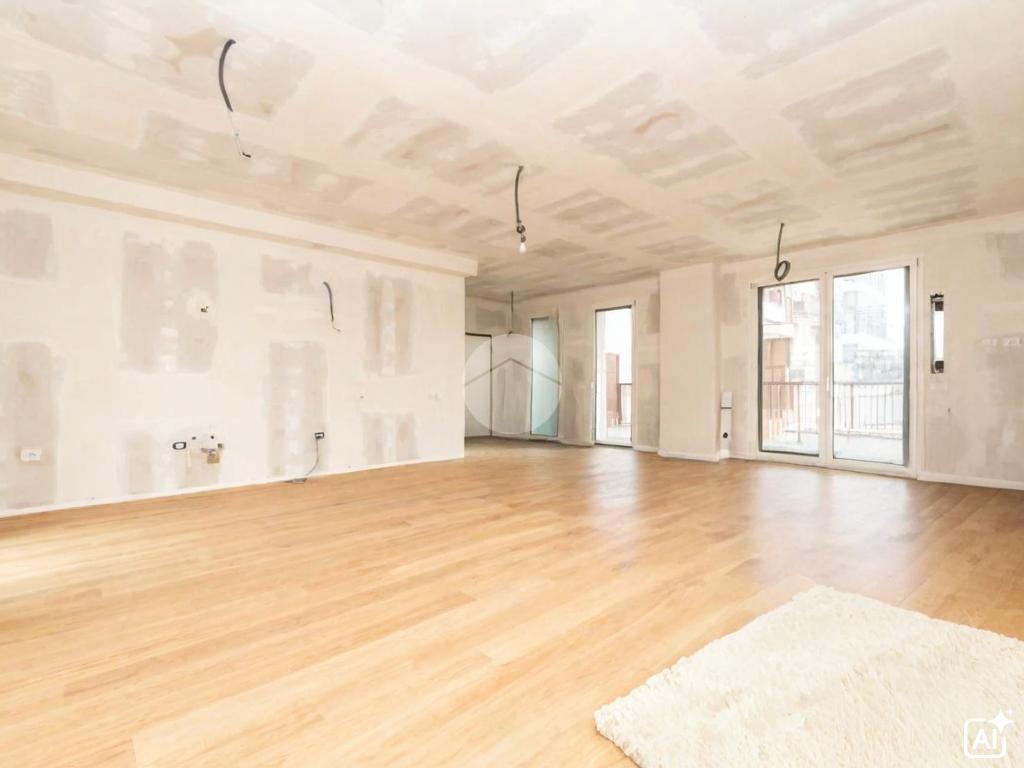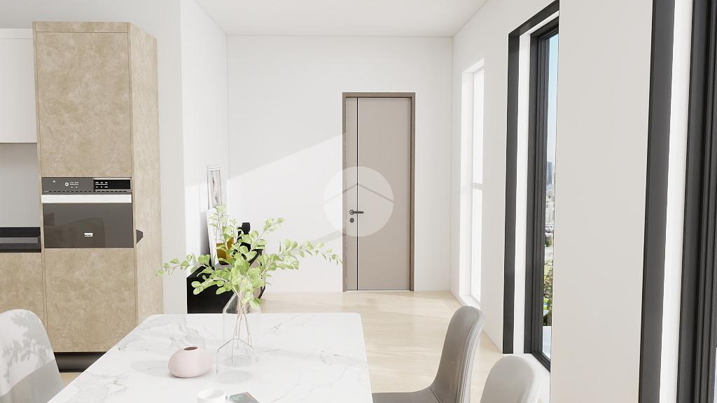 L’immobile, situato al primo piano con ascensore, si apre su un’ingresso in ampia e luminosa zona living con cucina a vista, perfettamente collegata al magnifico terrazzo di 25 mq, ideale per pranzi all’aperto e momenti di relax.